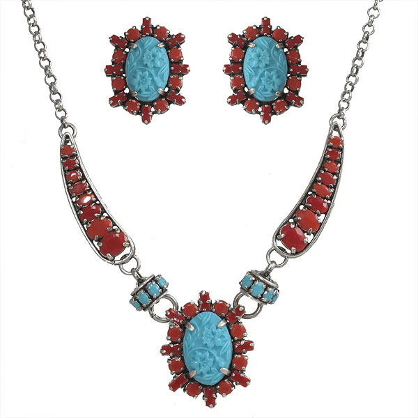 Размер: длина колье 40-45 см, длина серег 3,3 см