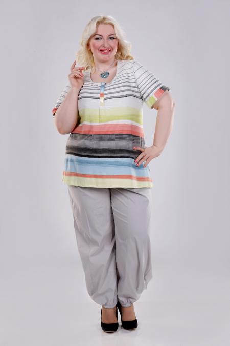 Вискозная блуза в полоску на планке,с пугвицами, гармонично подоидет к 6-ти цветам брюк:серому ,бежевому, салатовому, голубому, черному и белому